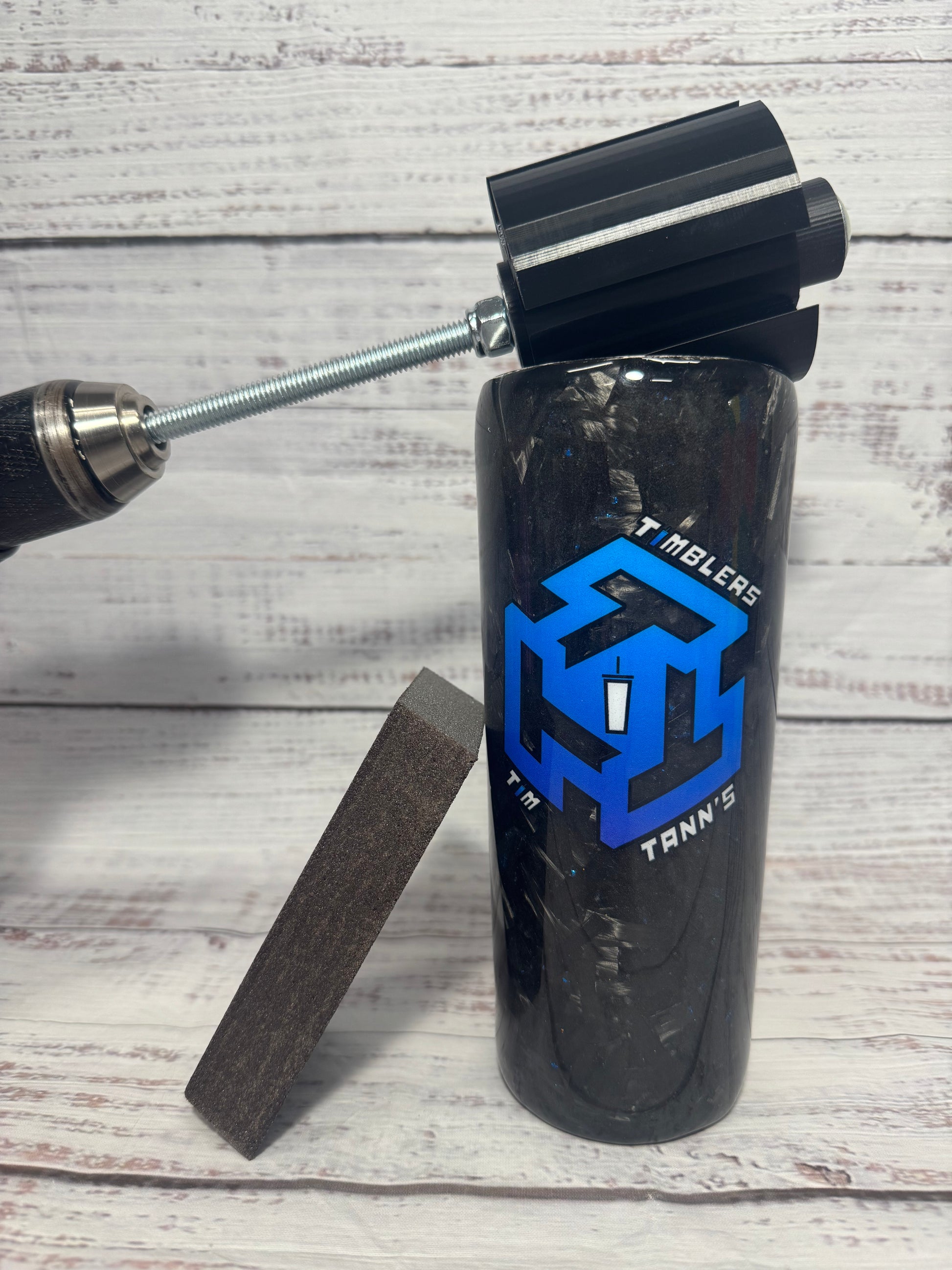 Look no further than the Timmy Buff It!! This is a drill attachment that sticks into your tumbler using tumbler inserts and makes sanding your timblers nice and smooth!!